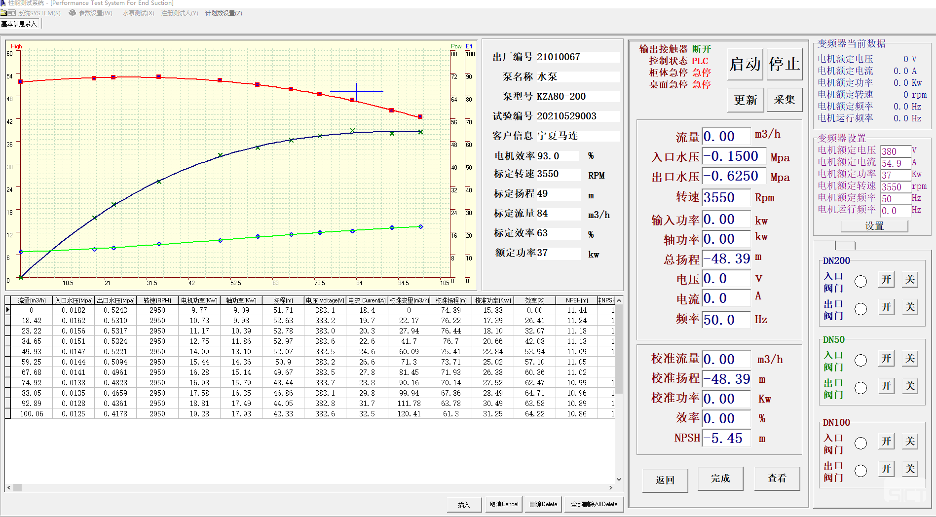包括開式臺和閉式臺,符合GB3216一級測試精度要求,具備月測試150臺能力,配備7條管路,可滿足DN50~DN300全覆蓋測試,所有測試數(shù)據(jù)全部納入系統(tǒng),排除人員讀數(shù)的誤差,可以更加準確的識別流量、揚程、軸功率、效率、轉(zhuǎn)速、氣蝕、振動、噪聲、溫升等參數(shù)指標。