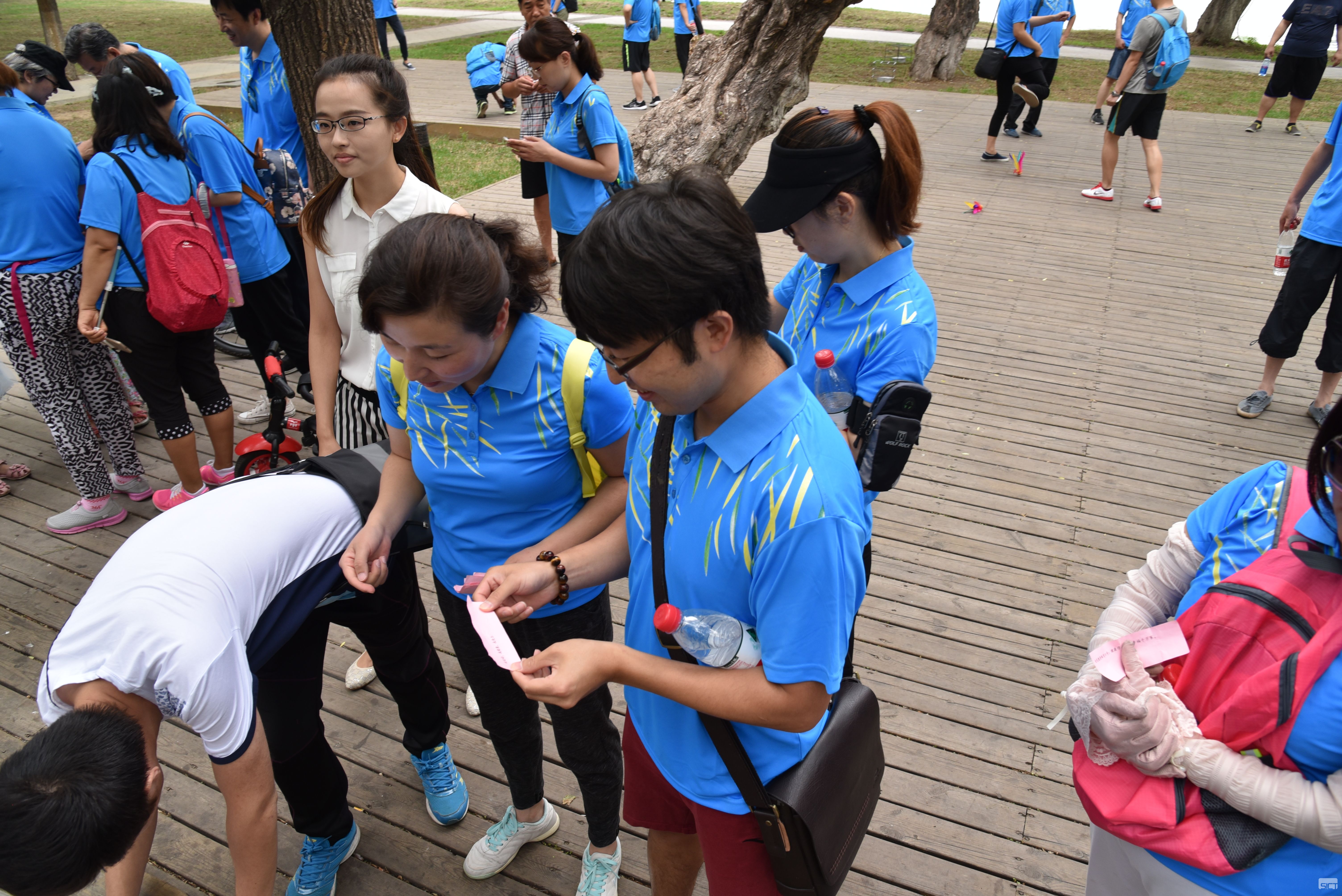 健步走隊員在公司旗幟的引領(lǐng)下,沿著奧林匹克公園林蔭路,伴著鳥語花香,步伐矯健的向著目的地前進(jìn)。在行進(jìn)的過程中,還設(shè)有“企業(yè)文化”寶藏等待著隊員去尋找,大家興致勃勃邊走邊找寶藏,在一片歡聲笑語中進(jìn)入到了我們的游戲環(huán)節(jié),游戲雖不難,但需要各部門隊員互相配合,各組隊員在共同協(xié)作,共同努力下,完成了一項項挑戰(zhàn),勝利的微笑洋溢在每個人的臉上,構(gòu)成一幅美麗的風(fēng)景線。